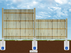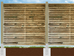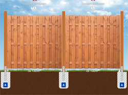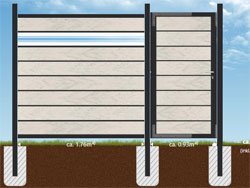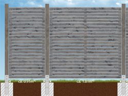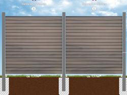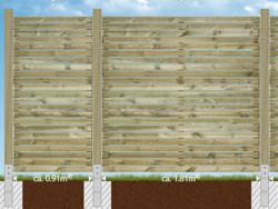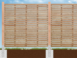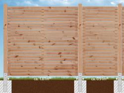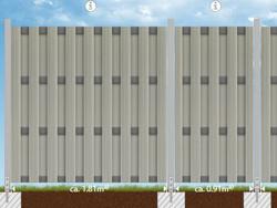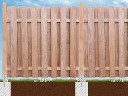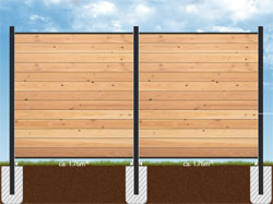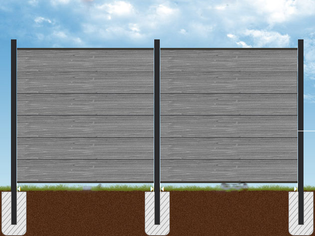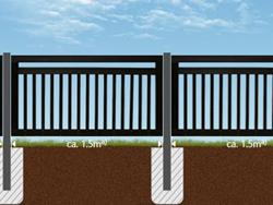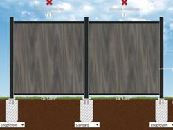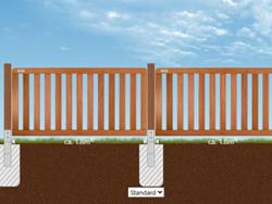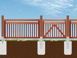 Für all unsere Zäune typisch sind fertigungs- und materialbedingte Maßtoleranzen von mehreren Millimetern pro Element. Erstellen Sie daher die Fundamente immer erst nach Erhalt des Materials anhand der IST-Maße.
